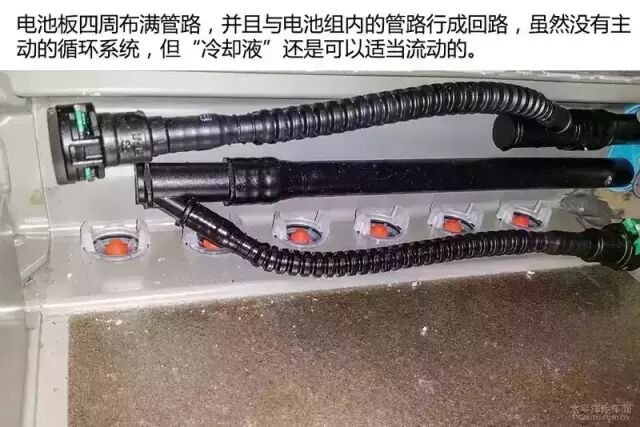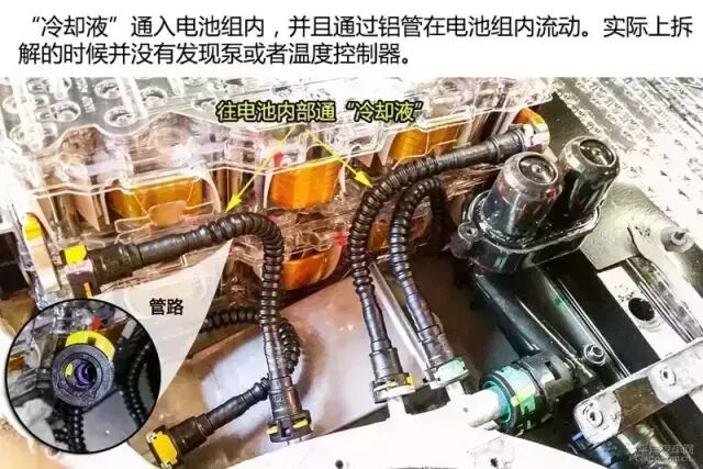 电池板内除了电池组外,最多都是“冷却液”管路。每组电池都需要通入一定量的“冷却液”。虽然“冷却液”并没有泵驱动主动流动,但整个电池板所有管路都是相通的,“冷却液”可热胀冷缩进行一定范围流动。