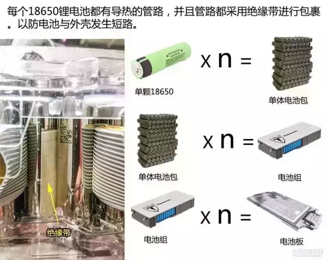 18650锂电池即普通笔记本电脑的锂电池,众多18650锂电池组成单体电池包,再由电池包组成电池组,并由16组电池组构成电池板。看似简单,但实际需要解决很多连接和散热的问题。